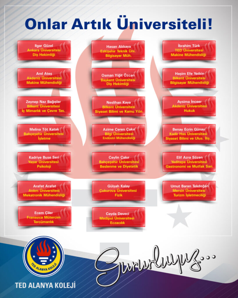 🎓 GURUR DUYUYORUZ! 🎓 TED Alanya Koleji Özel Lisesi olarak; öğrencilerimizin gösterdiği azim, emek ve kararlılık sayesinde Türkiye’nin seçkin üniversitelerine yerleşmelerinin mutluluğunu ve gururunu yaşıyoruz. 💫 […]